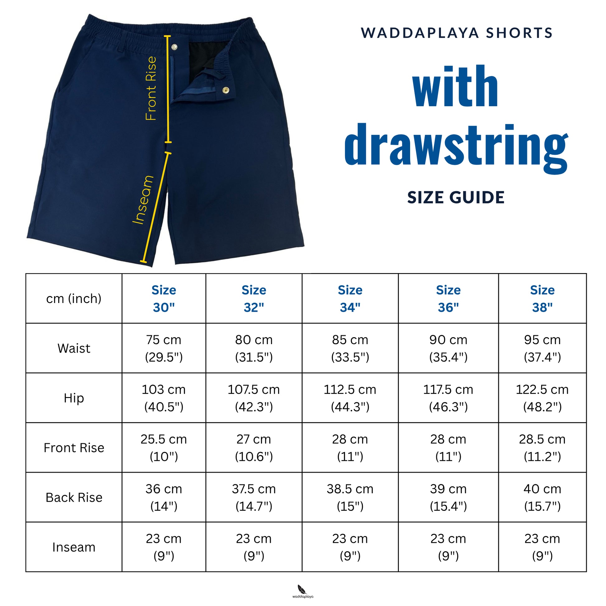 - If you're between sizes, pick the fit you'd prefer: For example, if you're a 33, then the 32 will be fine (athletic) but you won't need the drawstring. The 34 would be equally acceptable (relaxed) but you'd need to use the drawstring to 100% secure them on your hips.