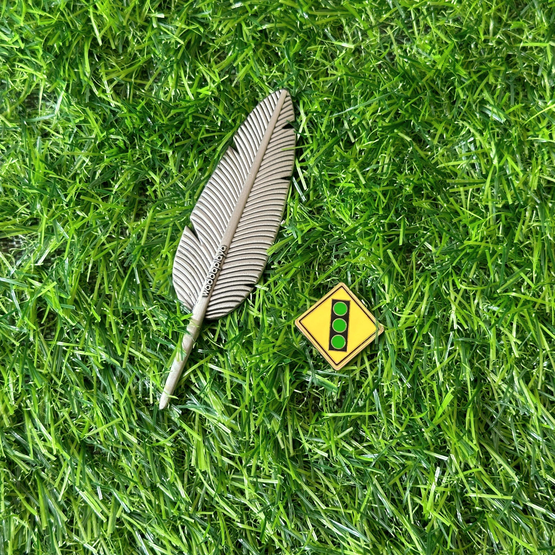 I love this divot tool. It actually works. The single prong tool is the only way to go. You can poke all around the ball divot and pull the dirt to the surface. Tamp it down with your putter and the divot will be as good as new. I actually look for other divots to repair because it does such a good job. The feather is a great ball marker, and it reminds me it is birdie time. I am going to order some more as gifts.